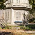 Um den Kronprinzengarten zu finden, müsst ihr gar nicht lange suchen. Anstatt den Schlosspark durch die Haupttore, links und rechts des Mittelbaus zu betreten, wählt ihr das Seitentor am südlichen Wassergang. Von dort aus sind es nur ein paar Schritte in den Park hinein, bis man vor dem kleinen Holzbrunnen steht, der den Eingang zu Kronprinzengarten markiert. Der kleine, eingezäunte Landschaftsgarten wurde 1799 als separates Gärtchen für den noch kleinen Kronprinz Ludwig, den späteren König Ludwig I. angelegt. In ihm befindet sich ein hölzerner, zweigeschossiger Pavillon mit balkonartiger Galerie. Seine Kuppel wird von einem Halbmond bekrönt. Obwohl das einstige „Sommerhaus des Herrn Kronprinzen K. Hoheit“ wegen seiner Schiebefenster etwas an englische Gartenhäuser um 1800 erinnert, prägt doch vor allem die hölzerne Verkleidung der Fassaden seinen Eindruck.