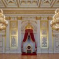 Wir schließen hier, denn die Malereien in den hinteren Räumen von Ludwigs Wohnung haben sich besser erhalten als die der zerstörten Vorzimmer und sind nach teilweiser Rekonstruktion zumindest in bescheidenem Umfang heute vor Ort wieder zu besichtigen. Auf dem Weg dorthin quert man damals wie heute den weiß-goldenen Thronsaal des Bayernkönigs, dessen von Schwanthaler entworfenen Wand-Reliefs den Werken des griechischen Festsängers Pindar aus dem 5. Jh. v. Chr. gewidmet sind. Im Zentrum, unter der Decke lehnt Pindar selber lässig im Dichterthron, verehrt von den griechischen Stämmen. Und nicht ganz ohne Absicht ist diese plastische Verherrlichung poetischen Genies direkt über dem purpurnen Baldachin und dem darunter platzierten Thron positioniert, auf dem Ludwig I. bei Empfängen Platz zu nehmen pflegte – der König der Dichter und der dichtende König: Kollegen im Geiste!