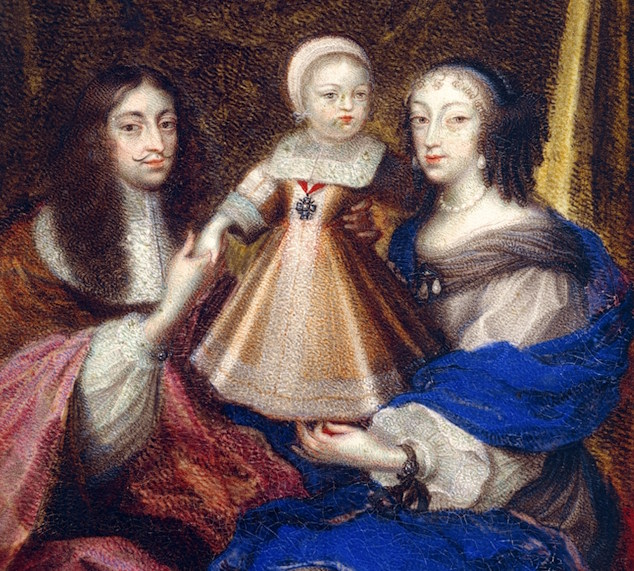 Stolze und erleichterte Eltern: Das Kurfürstenpaar Ferdinand Maria und Henriette Adelaide mit einem jüngeren Bruder Max Emanuels, M. Scharner, um 1671