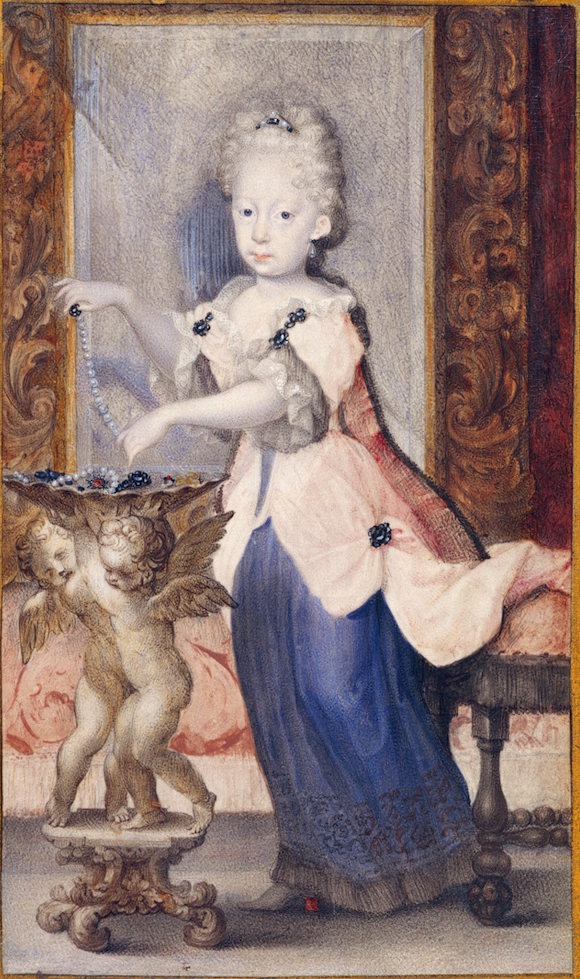 Schon als Junge wurde Max Emanuel auf eine künftige Verbindung mit Maria Antonia vorbereitet. Vielleicht gelangte Joseph Werners Gouache der kleinen Kaisertochter in diesem Zusammenhang in die Münchner Miniaturensammlung