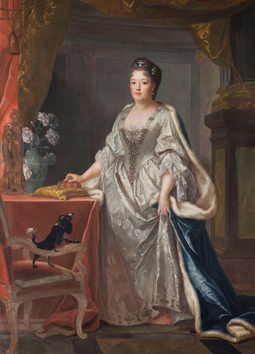 Die kämpferische Therese Kunigunde, gezügelt vom offiziellen Habitus in einem Staatsporträt nach J. Vivien (Schloss Nymphenburg)