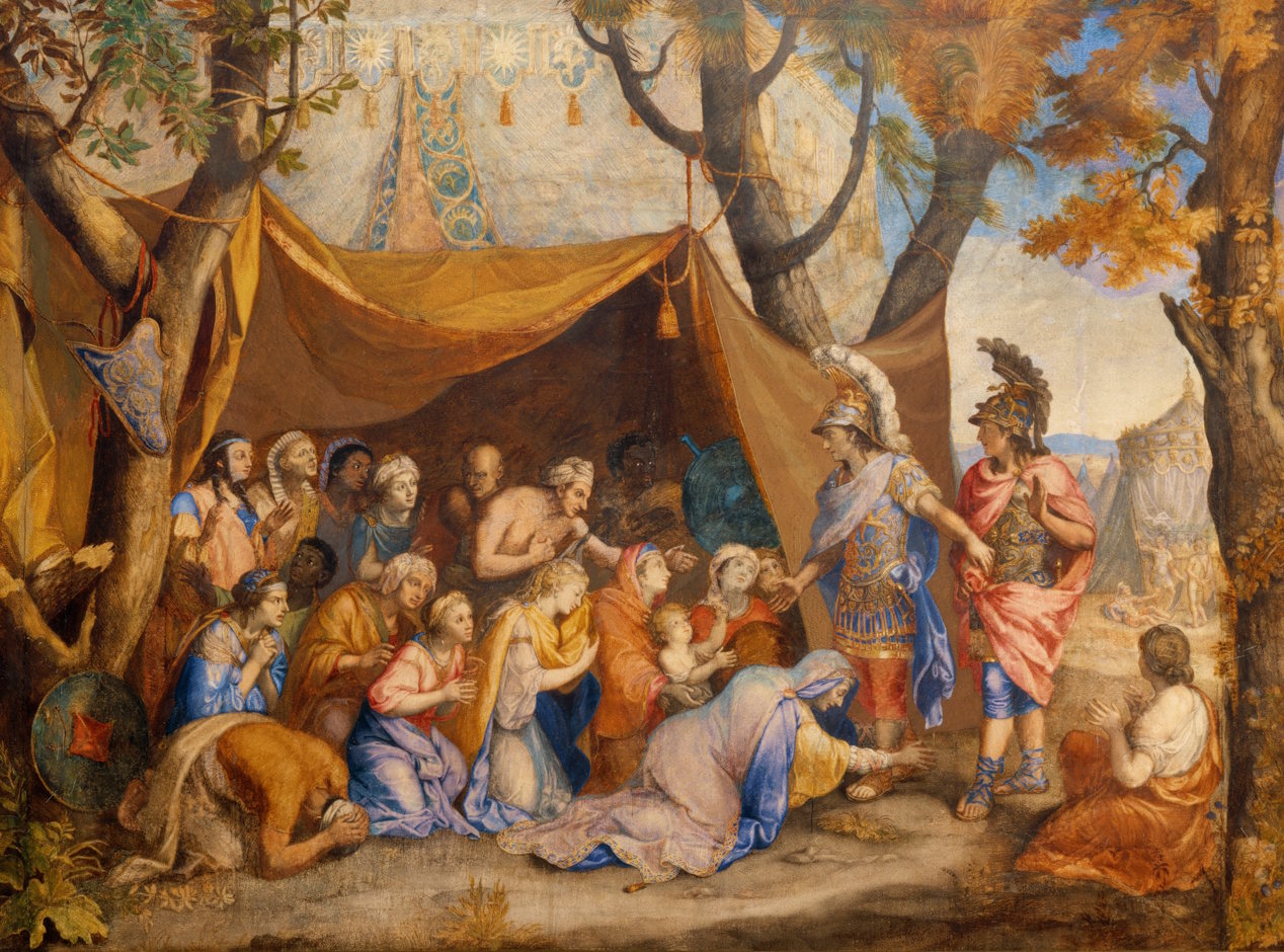 Ein Harem voll Schönheiten zu Füßen des Eroberers… – hat Max Emanuel sich selbst so gesehen? Vorlage der für ihn oder seinen Sohn ausgeführten Miniatur war das berühmte Gemälde „Alexander der Große im Frauenzelt des besiegten Darius“ des französischen Hofmalers LeBrun