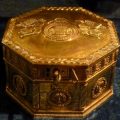 Auf der achteckigen Goldschatulle für das Siegel des Königreichs, das den Regierungsdokumenten Rechtskraft verlieh, prangte in schimmerndem Relief das erst jüngst kreierte bayerische Rautenwappen mit Schwert und Zepter, Zeichen der neu gewonnenen Souveränität und „unumschränkten Herrschermacht“ – die ersten Entwürfe hatten dagegen noch pietätvoll auf die mittlerweile abgelegte Würde Max Josephs als Kurfürst des Reiches Rücksicht genommen.