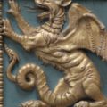 Grundsätzlich aber sind die Rokoko-Drachen des 18. Jahrhunderts in der Residenz eher verspielte Gesellen – und fast unzählbar: sie umwinden die Beine von Konsoltischen, balgen sich mit Putten, die sie mit vergoldeten Waffen piesacken, und ringeln sich zusammen mit den zierlichen „Rocaillen“ im Deckenstuck. Als gelernte Fachkräfte für’s Feuerspucken dürfen manche auch die Kerzenleuchter aus vergoldeter Bronze bewachen…