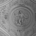 Nur wenige Schritte weiter lebt im benachbarten Antiquarium gleich eine ganze, vielgestaltige Drachensippe – wiewohl gut versteckt – in den gewölbten Fensternischen: Sie gehören zur varientenreichen Familie der „Grotesken“, welche die Künstler der Renaissance nach dem Vorbild antiker Dekorationsmalereien zuerst in Italien und dann in ganz Europa an Wände und Decken zauberten (die Bezeichnung leitet sich ab von den verschütteten Räumen, den „Grotten“, in denen solche Malereien erstmals entdeckt wurden): Bizarre Mischwesen treiben vor freien Hintergründen ihr fantastisches Spiel und fungieren als lockeres, schmückendes Rahmenwerk der bedeutungsschweren Hauptdarstellungen.