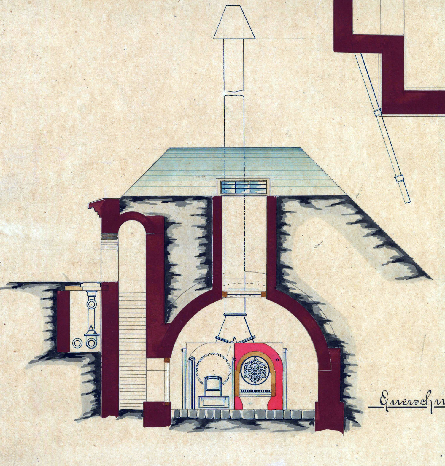 Grundriss des Heizraumes mit Brennkesselanlage und Leitungsführungen neben dem Capri-Ausblick in der Venusgrotte